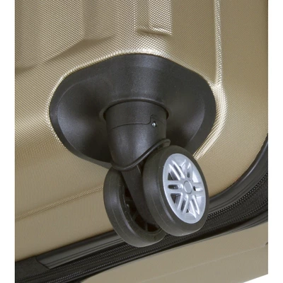 - ABS Construction, 2-inch expandable feature for more packing capacity, Interior compartments features zipper divider, compression straps, large mesh zipper pocket, and accessory pocket