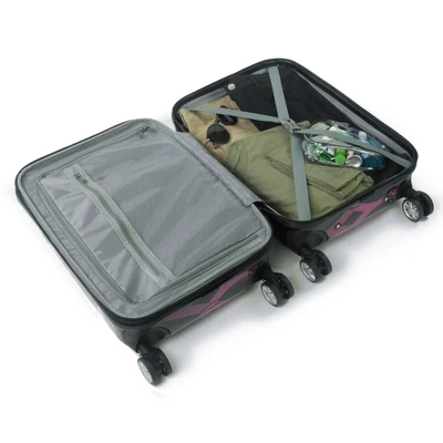 Ful’s Hard side Atomic pink print luggage is boldly explosive and chic making it a stand-out style we actually can’t wait to show off. More importantly, it is a lightweight creation that has all the essential details of a perfect suitcase. It features an easy to grip aluminum, telescopic pull handle and is mobile multi directional spinners for quick transport. The full-body main compartment is divided to give organization options, and it includes an interior mesh zipper compartment to help manage your small travel items. Other features include retractable side and top panel handles, nylon inner lining, and clothing compression straps. The luggage is also expandable with a 2 inch zipper gusset. This handy suitcase is easy to clean, and is backed with a 5 year warranty.-Easy to grip with an aluminum, telescopic pull handle.-Luggage is mobile, multi directional spinners for quick transport.-Expandable with a 2 inch zipper gusset for more storage space.-Hard sided ABS plastic case is durable, lightweight, and reliable.-Full-body main compartment is divided to give organization options.-Clothing compression straps keeps clothes in place and lets you store more.-Interior mesh zipper compartment helps manage your small travel items.-Retractable top and side panel handles provide hassle free hefting into cars and overhead bins.-Nylon inner lining is durable and moisture resistant.-Easy to spot clean.-5 Year Warranty.-20H X 14.35W X 9.75D-Imported.