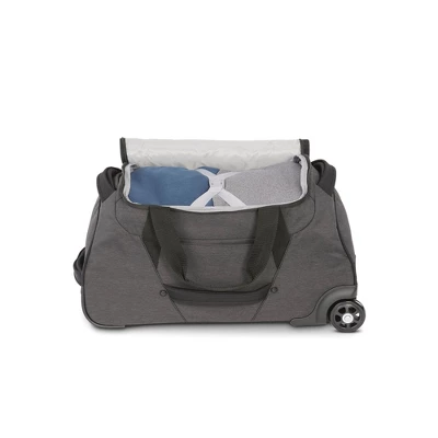 - EXTERIOR FEATURES: Wheeled duffel bag with exterior padded grab handles for versatile mobility and transportation; Weight: 12.57 pounds