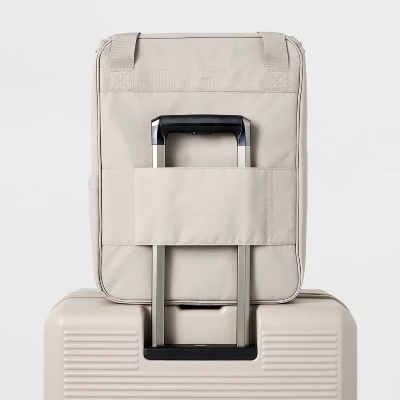 From day trips to vacations, conveniently carry your pet’s essentials in this Pet Travel Gear Bag from Open Story™. Made from a water-resistant fabric, this pet travel gear bag features a spacious main compartment secured by a zip closure to stash pet feeding supplies and grooming or toilet essentials. It features an outer zip pocket and a sleeve pocket for extra storage. Showcasing a web handle for easy carrying, it features a sleeve at the back for easy slipping over the telescoping handle of your luggage bag for effortless maneuverability.