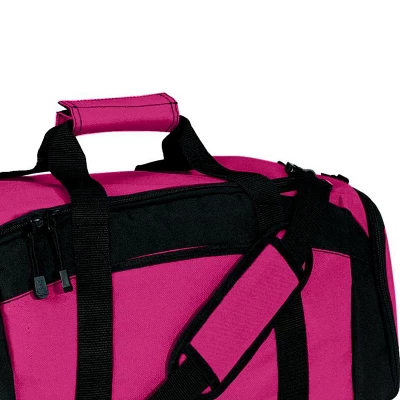 From warm-up to cool-down this budget-friendly bag holds everything you need to work out. 600 denier polyester canvas 210 denier polyester lining Fully lined zippered main compartment Front pocket and zippered end pocket Separate zippered end pouch for pool gear or shoes Adjustable detachable padded shoulder strap Dimensions: 10.75 h x 20.75 w x 9 d; Approx. 2 008 cubic inches. Great to be used as and for Gym bag Sport Duffel Workout bag Duffel bag Athletic bag Fitness bag Black bag Spacious bag Durable bag Shoe compartment bag Sports duffel Removable shoulder strap bag Versatile bag Functional bag Large capacity bag Athlete bag Sports gear bag Training bag