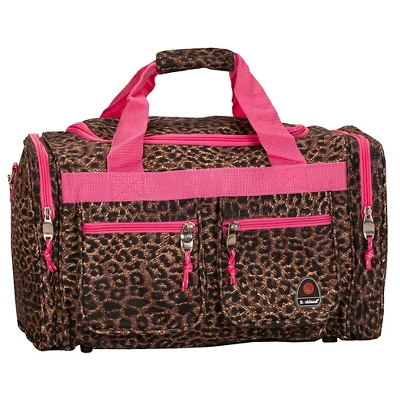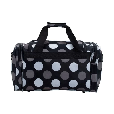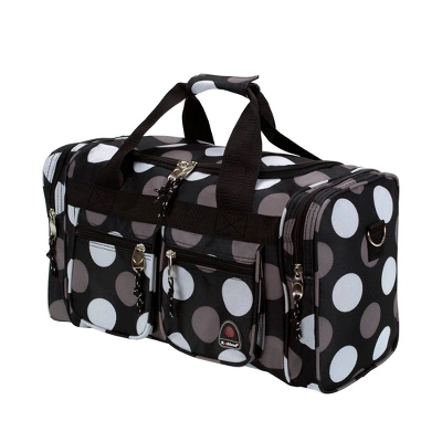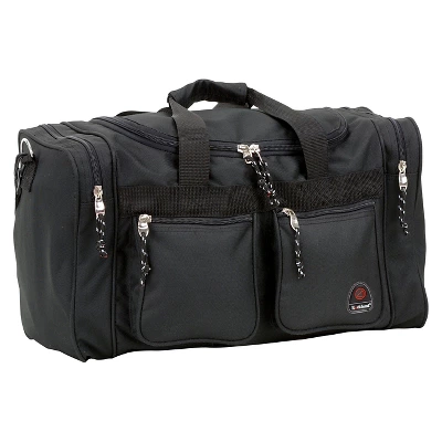 Compliment your Rockland Luggage collection with this stylish carry-on flight tote/duffle bag. This fashionable polyester fabric duffel will turn heads anywhere your travel takes you. Bag is constructed of heavy-duty 600 denier polyester. Features a U-top opening that provides easy access to main zipper secured compartment, two front zipper secured compartments and an adjustable ergonomic shoulder strap. Measures 19”L x 10.5”W x 8”H