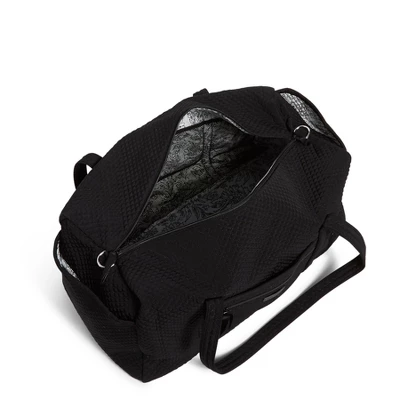 Going home for a long weekend or out on a girls’ adventure getaway? This duffel will help you pack it all in style. Interior pockets keep your cosmetics, flat irons and socks all sorted. The exterior pockets keep boarding passes, reading material or snacks close by. Details: Microfiber is lightweight, solid-colored polyester. Exterior features one zip pocket and three slip pockets. Interior features three elastic mesh pockets. Zip closure. Capacity 49 L. Care Tips: Remove strap before laundering; machine wash cold, gentle cycle, only non-chlorine bleach when needed; line dry