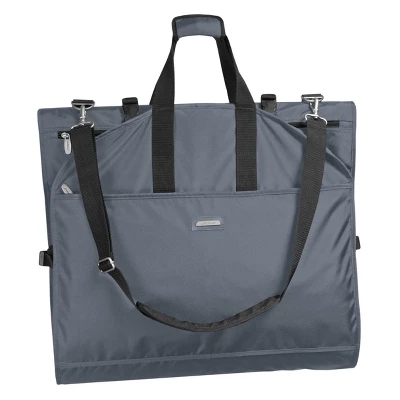 - GREAT CARRY ON BAG FOR AIR TRAVEL: Keep your gown with you! Tri-fold design fits in the airplane’s overhead bin and meets carry-on requirements for most airlines; Your go-to bag for all types of travel whether by car, plane, train or cruise boat; Multiple exterior pockets for packing shoes and accessories; Two interior roll-bar straps to secure clothing
