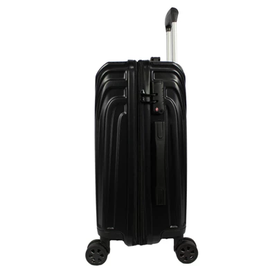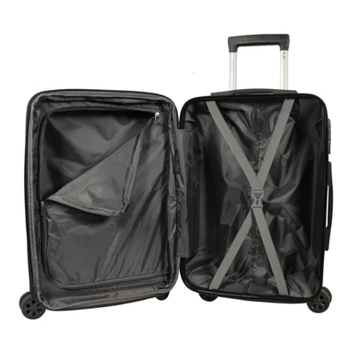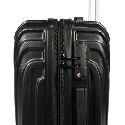 - Durable ABS scratch-resistant shell, 360-degree spinner wheels, Telescoping push-button trolley system, and Built-in 3-digit TSA combination lock
