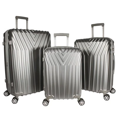 The World Traveler Skyline 3-Piece luggage set is made of durable ABS material and features a 3-digit TSA combination lock, eight(8) spinner wheels, a retractable telescopic handle, a top grip handle, and a fully lined interior with a zipper divider, and compression straps. It is lightweight and expands two inches for more packing capacity.